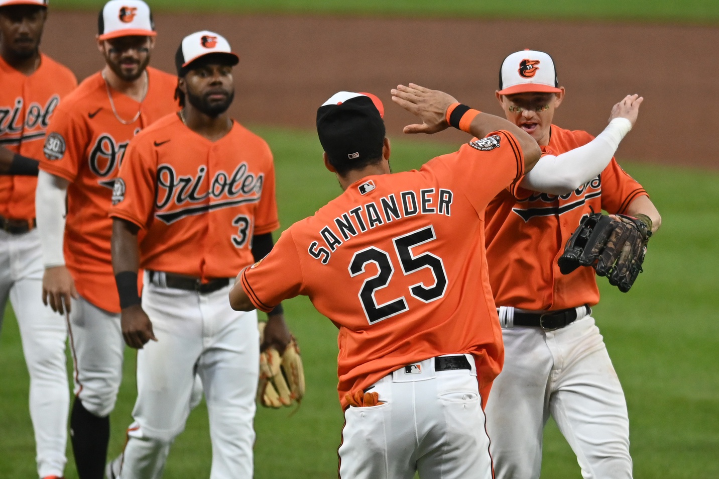 After Hays made the catch while running toward the left-field line, he slapped hands with a fan as the Orioles and their fans began their celebration.