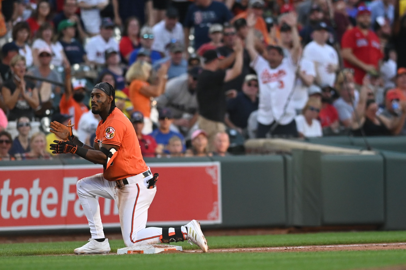 The Orioles scored two runs in the seventh. Ramón Urías led off with a single. Jorge Mateo singled and, when Boston rightfielder rightfielder Jarren Duran made a poor relay throw to shortstop Xander Bogaerts, Urias went to third and Mateo took second.