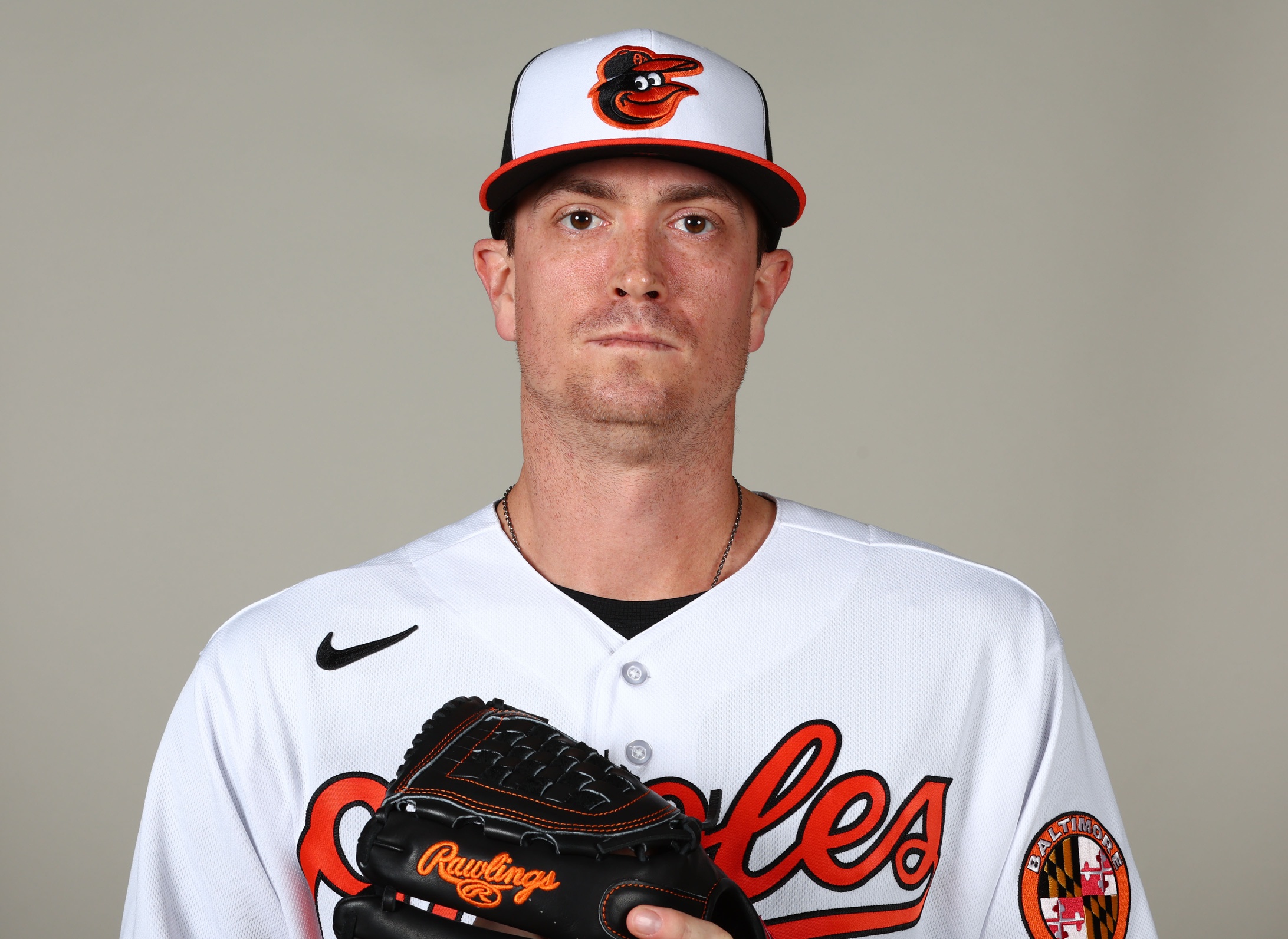 Feb 23, 2023; Sarasota, FL, USA; Baltimore Orioles starting pitcher Kyle Gibson (48) poses for a photo at Ed Smith Stadium. Mandatory Credit: Kim Klement-USA TODAY Sports