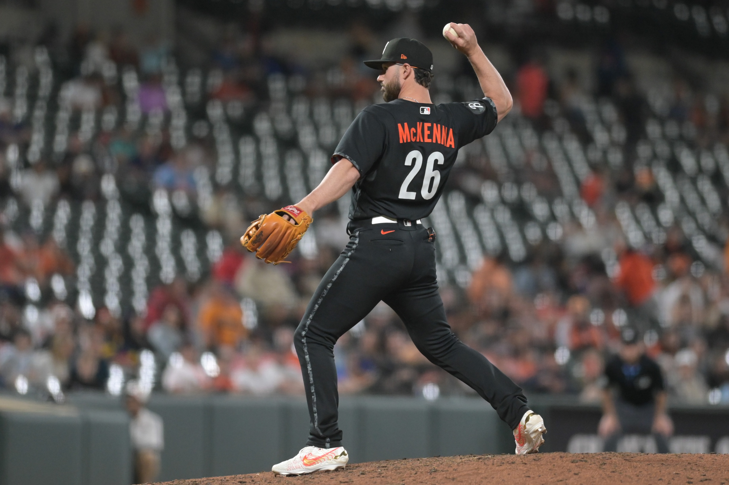 Terrin Vavra’s infield single that scored Ryan O’Hearn in the eighth gave the Orioles (33-18) their second run, and in the ninth, Hyde used reserve outfielder Ryan McKenna to pitch. In his third career mop-up appearance, McKenna threw a host of pitches clocked at 35 mph and allowed two runs on four hits.