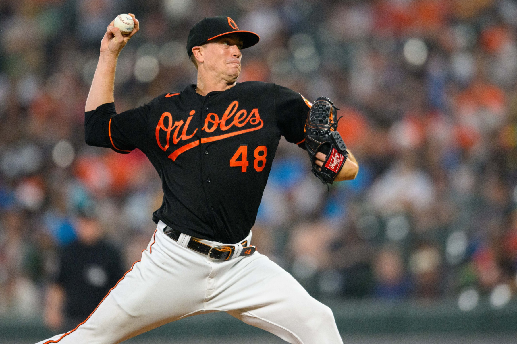 BOSTON—Pitcher Kyle Gibson has been a winner for the Orioles — on and off the field this season. Gibson leads the Orioles with 14 wins, a career high, and he’s tied with Toronto’s Chris Bassitt for the American League lead.