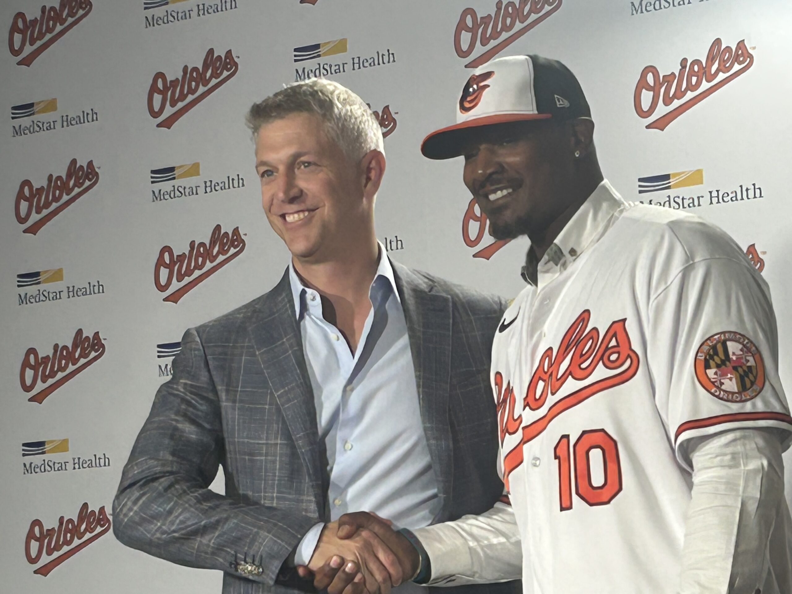 Jones was joined by executive vice president/general manager Mike Elias, who signed him to the contract and presented him with his No. 10 Orioles jersey.