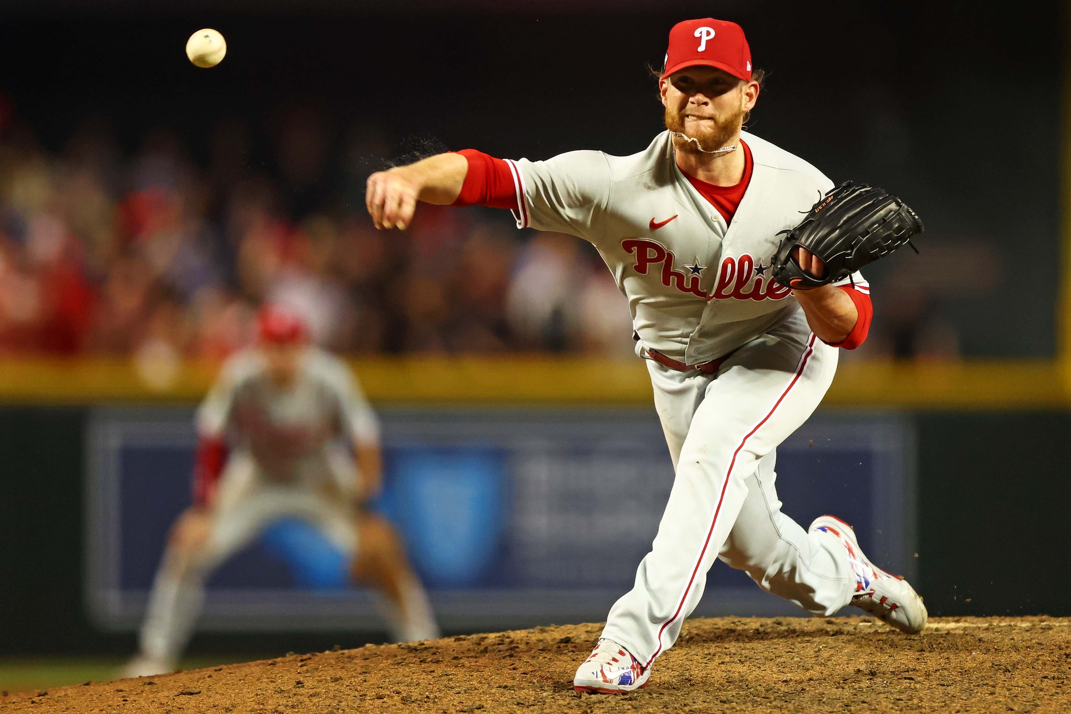 Oct 20, 2023; Phoenix, Arizona, USA; Philadelphia Phillies relief pitcher Craig Kimbrel (31) pitches during the eighth inning against the Arizona Diamondbacks in game four of the NLCS for the 2023 MLB playoffs at Chase Field. Mandatory Credit: Mark J. Rebilas-USA TODAY Sports