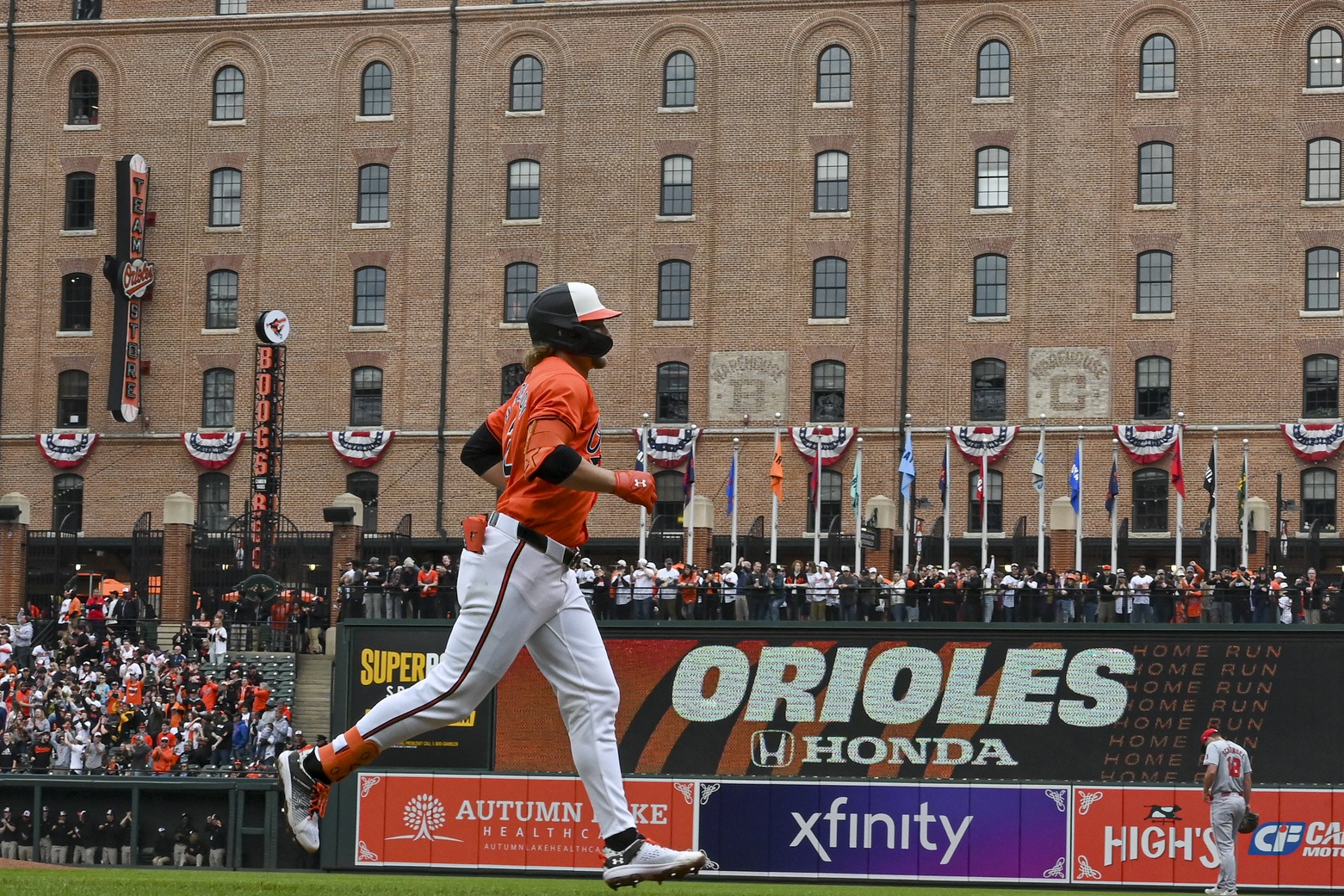 Mar 30, 2024; Baltimore, Maryland, USA; Baltimore Orioles shortstop Gunnar Henderson (2) rounds the bases after hitting a first inning home run against the Los Angeles Angels at Oriole Park at Camden Yards. Mandatory Credit: Tommy Gilligan-USA TODAY Sports