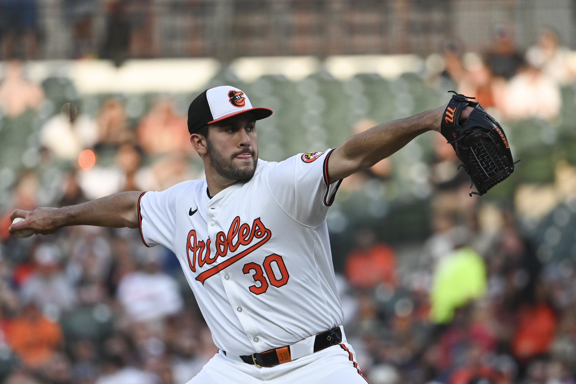 Apr 29, 2024; Baltimore, Maryland, USA; Baltimore Orioles pitcher Grayson Rodriguez (30) throws a second inning] pitch against the New York Yankees at Oriole Park at Camden Yards. Mandatory Credit: Tommy Gilligan-USA TODAY Sports