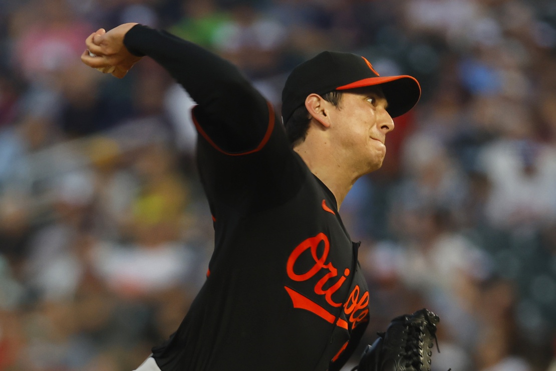 Sep 28, 2024; Minneapolis, Minnesota, USA; Baltimore Orioles starting pitcher Matt Bowman (51) throws to the Minnesota Twins in the second inning at Target Field. Mandatory Credit: Bruce Kluckhohn-Imagn Images