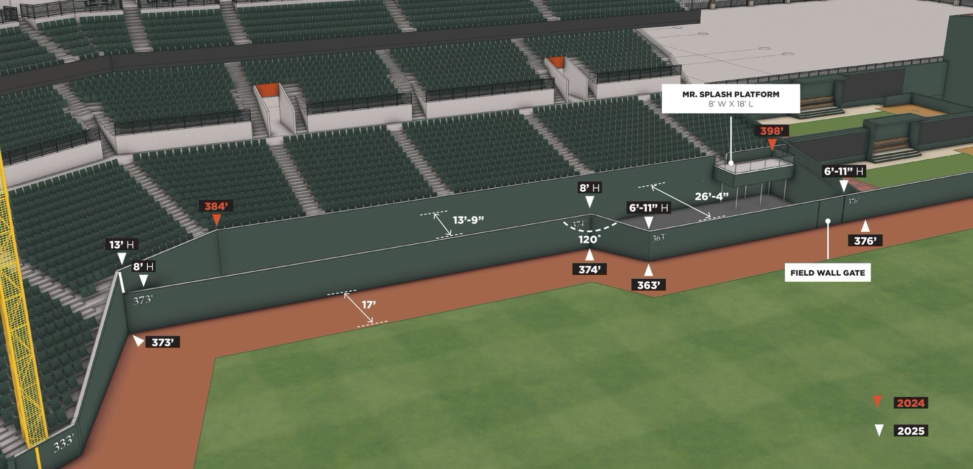“Our hope is that by pulling the dimensions in a little bit, and in some areas it will be as much as 20 feet. In others, it will be more like 11 feet and as little as 9. We will be able to get closer to what our original goal was … a neutral playing environment that assists a balanced style of play, a park that was overly homer-friendly prior to our changes in 2022 that is now a little overly skewed given what we did back then.