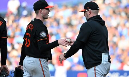 BALTIMORE—It was both a happy and sad night at Oriole Park on Tuesday night. The Orioles moved closer to the American League...