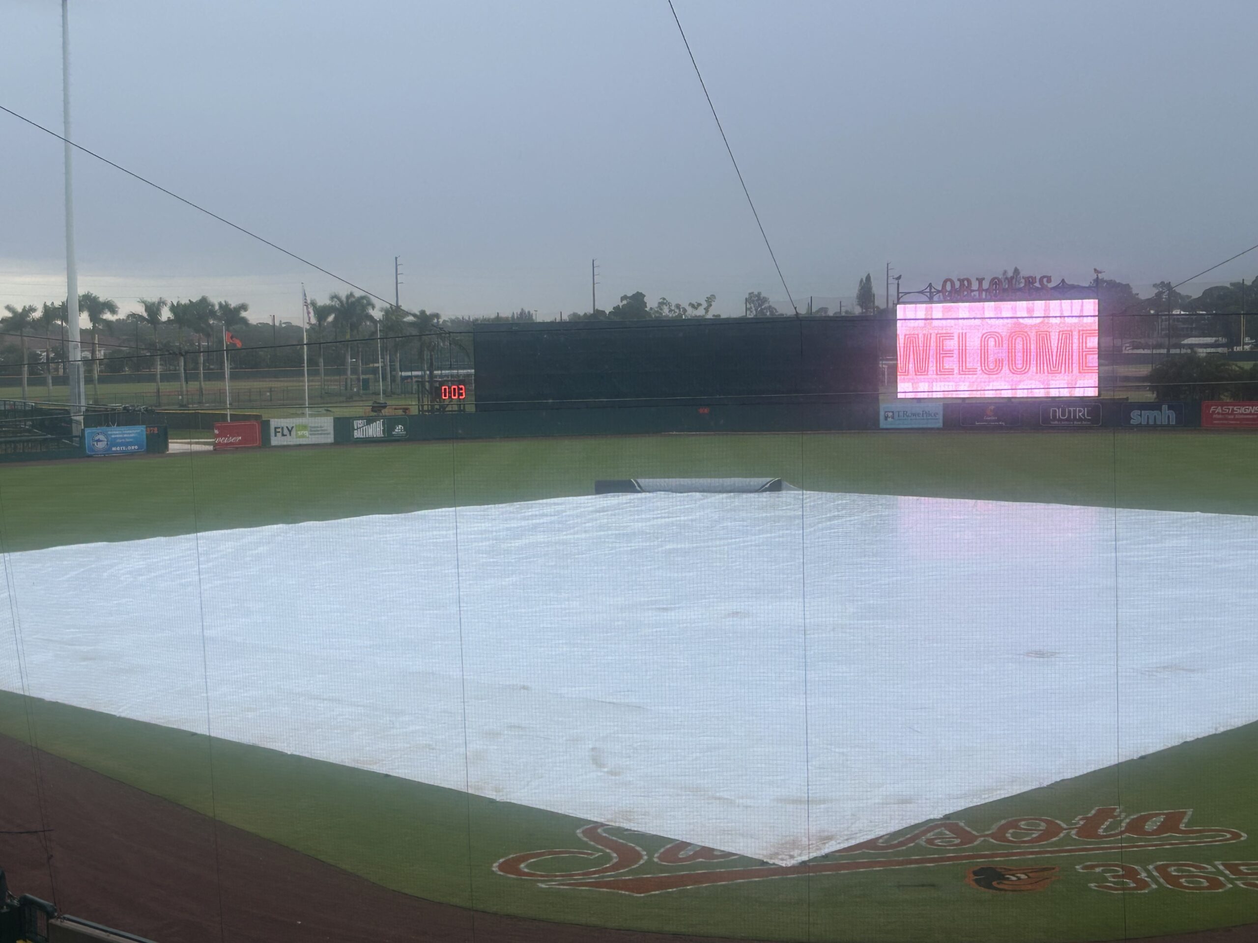 SARASOTA–The Orioles’ scheduled game against the Atlanta Braves on Monday was canceled because of rain. The announcement came about three hours before the rescheduled 4:05 p.m. start.