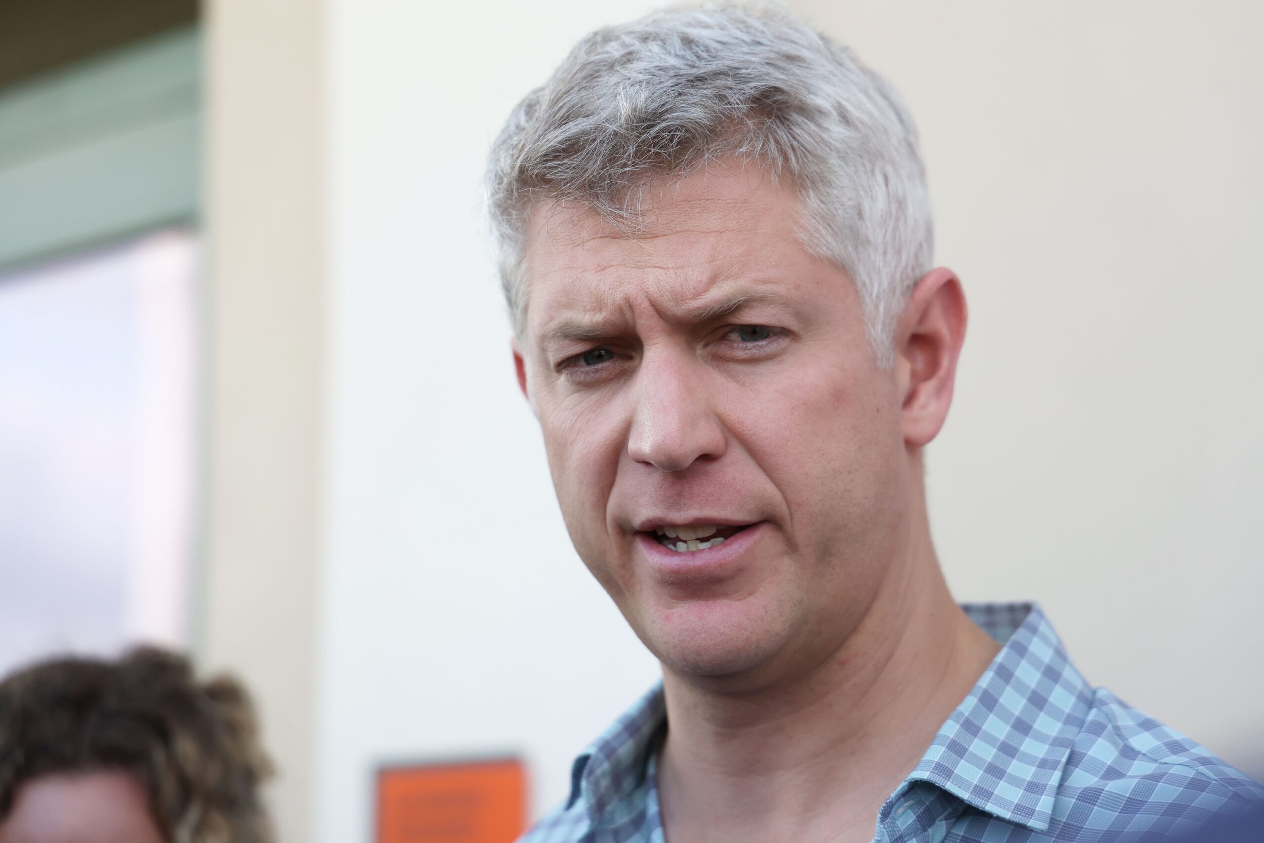 Feb 13, 2025; Sarasota, FL, USA; Baltimore Orioles general manager Michael Elias talks with media during spring training workouts at Ed Smith Stadium. Mandatory Credit: Kim Klement Neitzel-Imagn Images