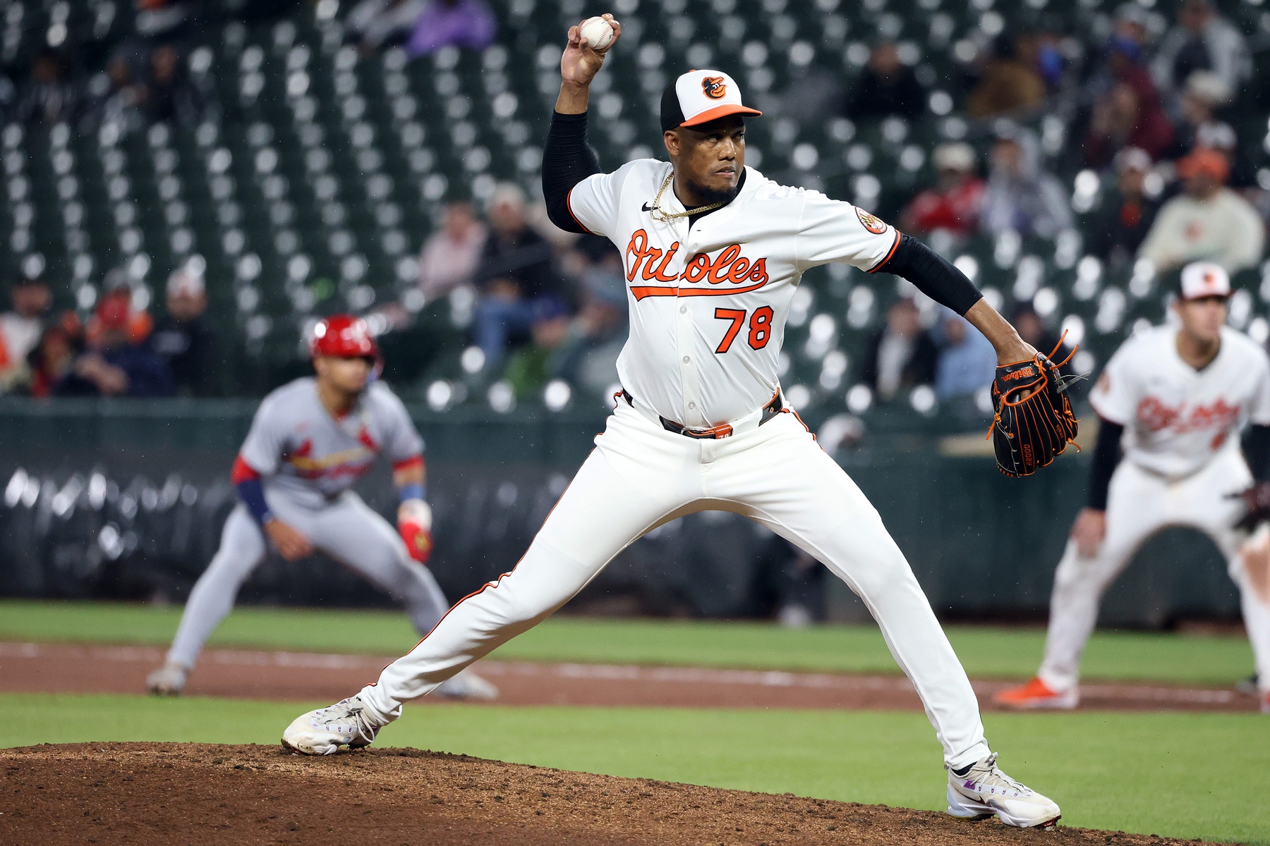 May 27, 2025; Baltimore, Maryland, USA; Baltimore Orioles pitcher Yennier Cano (78) throws during the eighth inning against the St. Louis Cardinals at Oriole Park at Camden Yards. Mandatory Credit: Daniel Kucin Jr.-Imagn Images