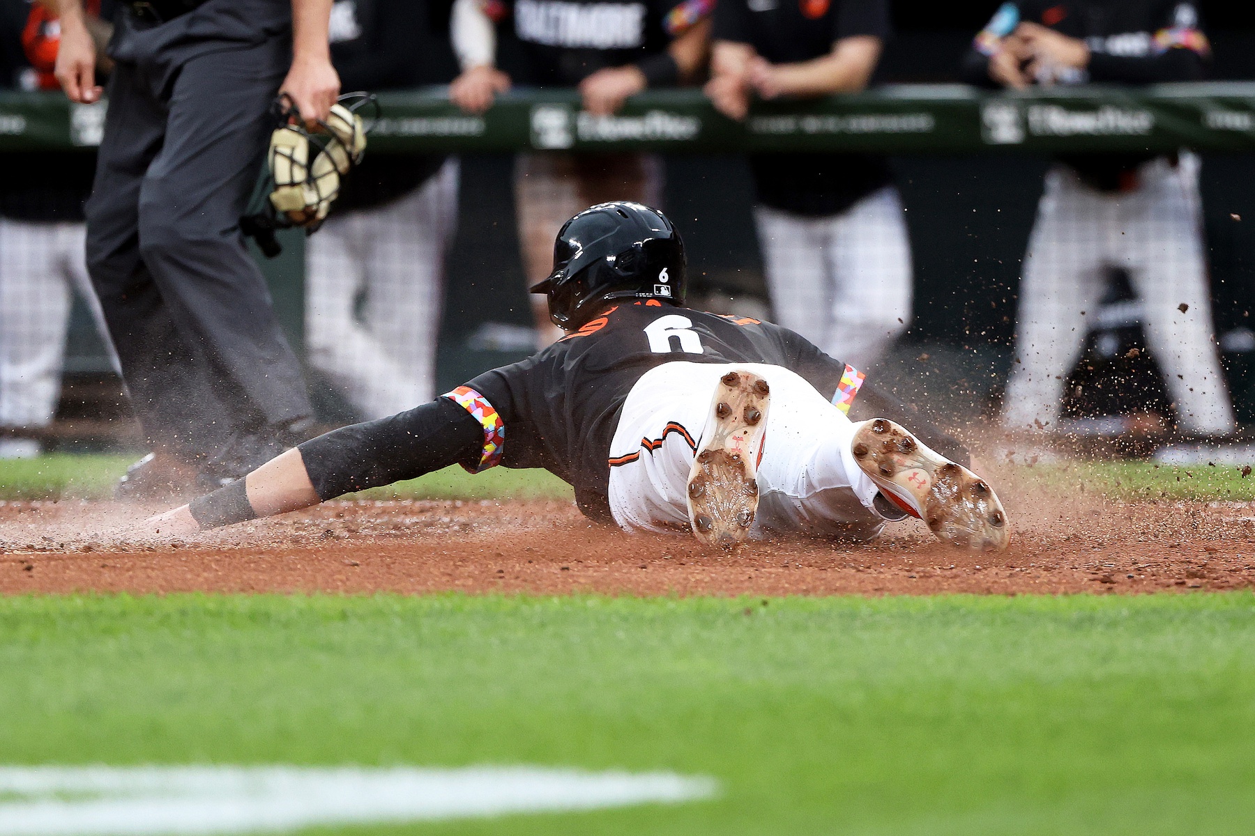 Baserunners are trying to beat out infield grounders or, in the case of Mountcastle, making a daring dash for home. He’s 6 feet 3, 220 pounds, and runs well. On the double steal, he wanted to run faster and put too much tension on the right hamstring muscle.
