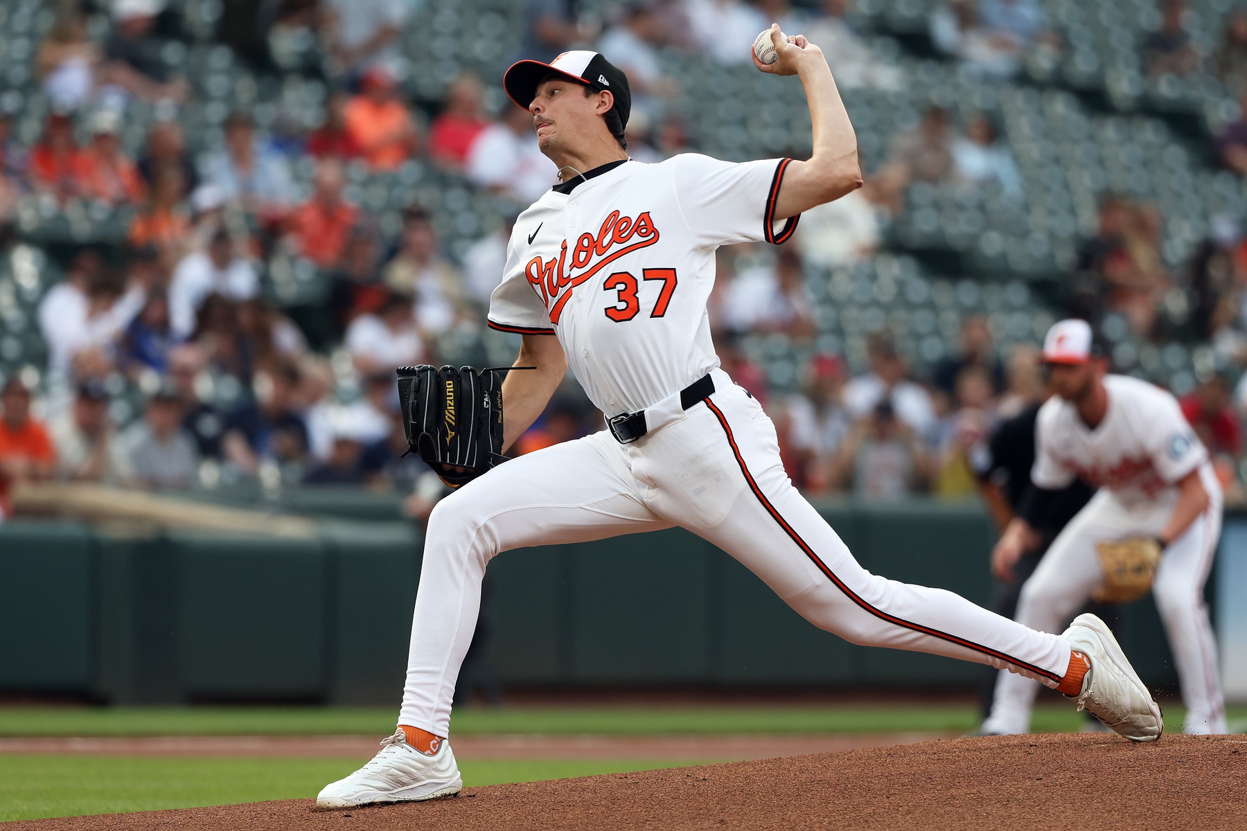 Jun 10, 2025; Baltimore, Maryland, USA; Baltimore Orioles pitcher Cade Povich (37) throws during the first inning against the Detroit Tigers at Oriole Park at Camden Yards. Mandatory Credit: Daniel Kucin Jr.-Imagn Images