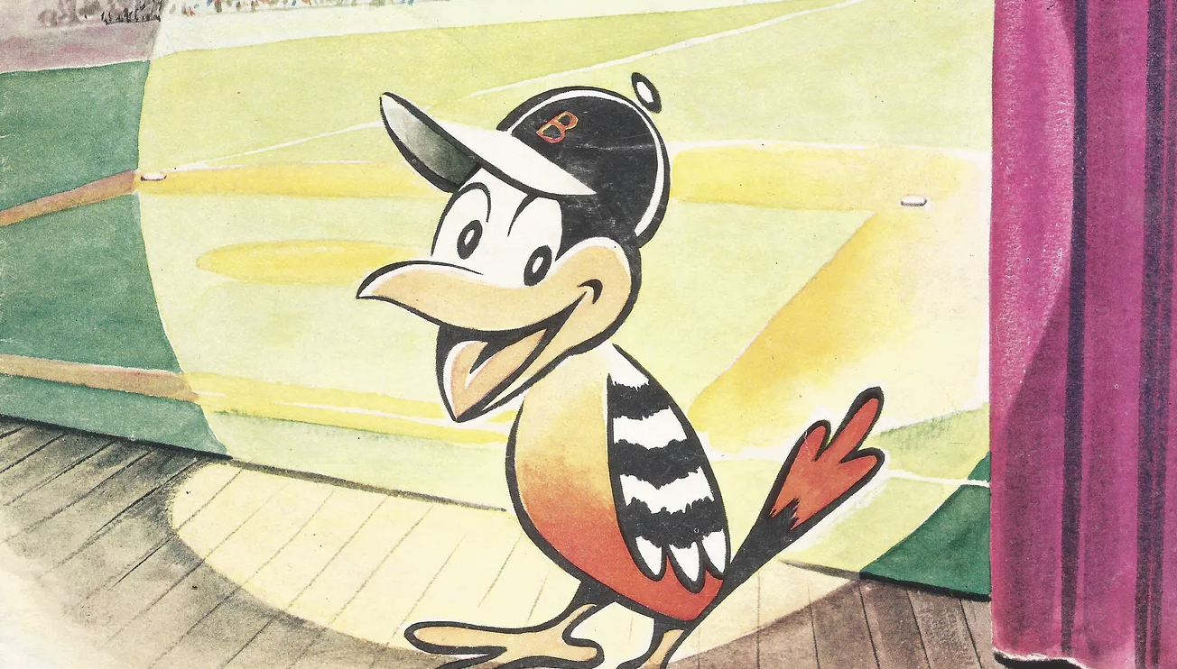 The club could have elected to utilize an orinthologically correct Oriole as its emblem, as it did decades later, but Armstrong wanted a cartoon bird. “I was looking for a jaunty but likable bird, one with plenty of personality,” he wrote. “Several excellent entries were received. But one stood out above all the rest.”