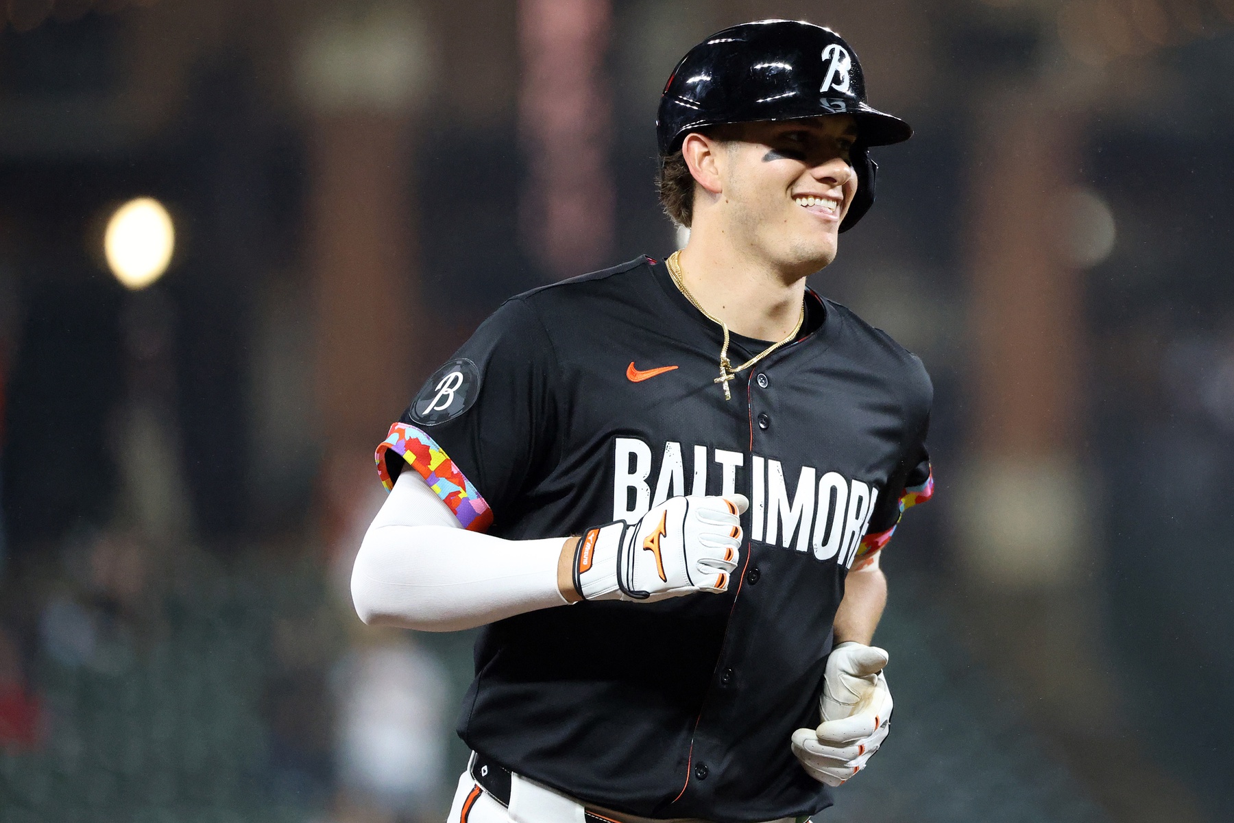 Jun 27, 2025; Baltimore, Maryland, USA; Baltimore Orioles third baseman Coby Mayo (16) celebrates after hitting a home run during the eighth inning against the Tampa Bay Rays at Oriole Park at Camden Yards. Mandatory Credit: Daniel Kucin Jr.-Imagn Images
