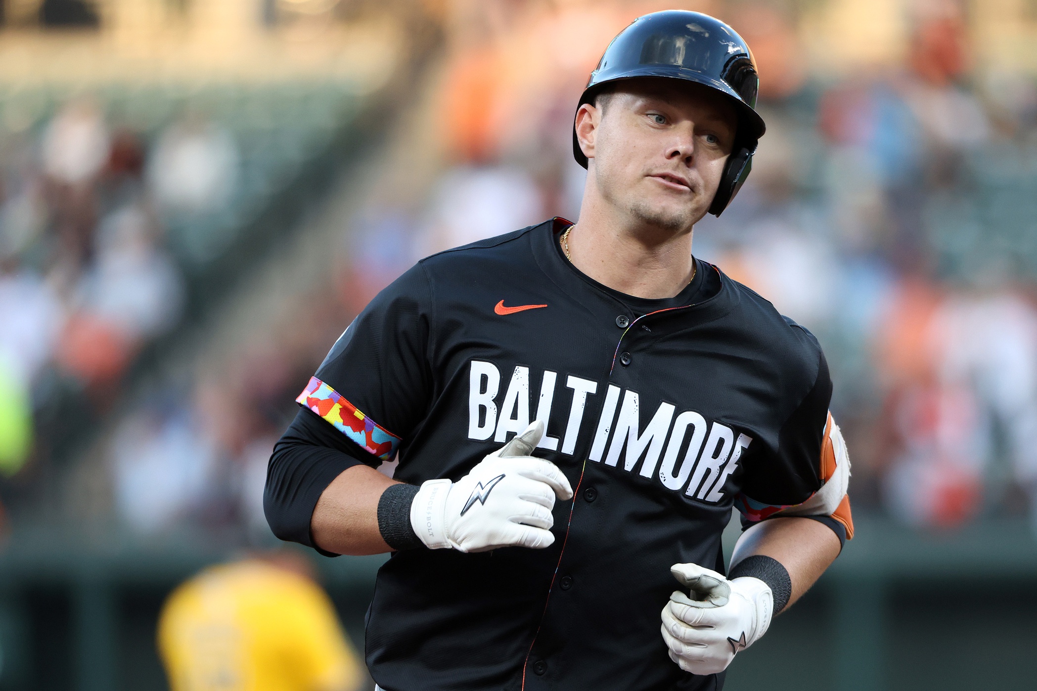 Aug 8, 2025; Baltimore, Maryland, USA; Baltimore Orioles designated hitter Ryan Mountcastle (6) rounds the bases after hitting a home run during the first inning against the Oakland Athletics at Oriole Park at Camden Yards. Mandatory Credit: Daniel Kucin Jr.-Imagn Images