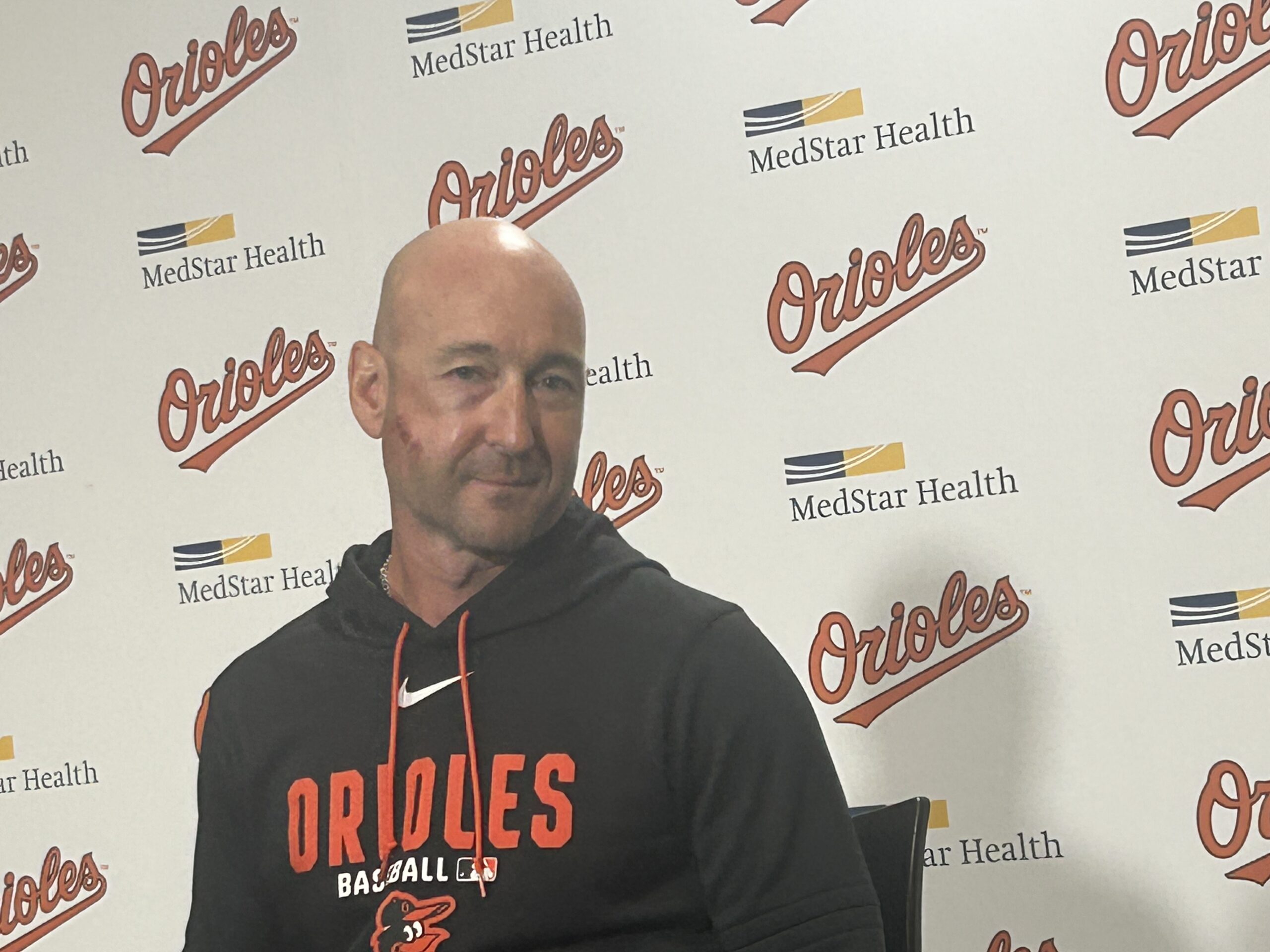 BALTIMORE—A day after Orioles manager Craig Albernaz was forced to leave the dugout after a Jeremiah Jackson line drive hit him on the right side of the face, breaking his jaw, he was back at work and in good spirits.